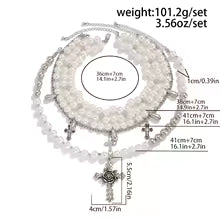 This layered cross pearl necklace combines timeless elegance with modern design. Featuring a delicately crafted cross pendant paired with lustrous pearls, it offers a refined accessory ideal for both formal occasions and everyday wear. The layering effect adds dimension and sophistication, making it a versatile piece to enhance any outfit with subtle yet impactful style.
